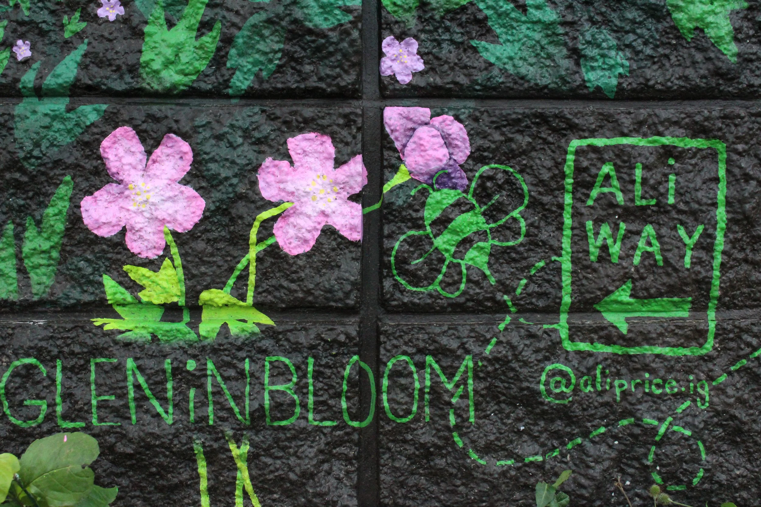 This surreal nature scene at Glen Park serves as an immersive experience that sparks curiosity and wonder. Hand-painted on a rocky surface, it features all native plants and animals. This mural is designed to be an educational tool with a podium listing the wildlife and plants, creating a scavenger hunt for kids. Additionally, it integrates technology with the "AReverywhere" augmented Reality app. By holding your phone over each element, you can see me pop up with an educational video, enhancing the learning experience. This mural combines art, nature, and technology for an immersive educational experience.